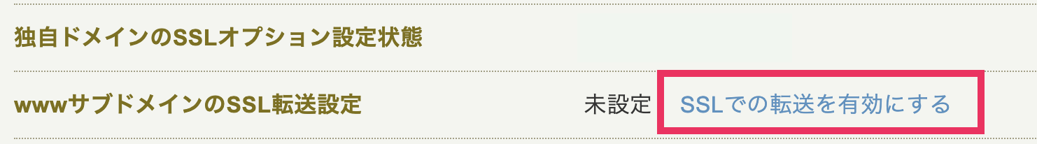 - 「wwwサブドメインのSSL転送設定」という項目を探す