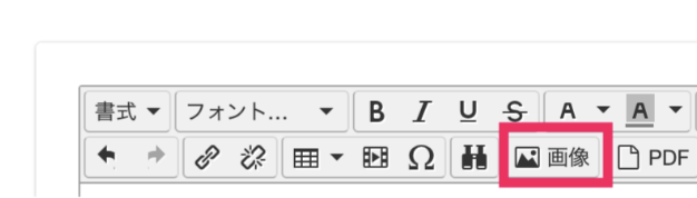簡易エディタ(リッチエディタ)内のツールバー「画像」をクリックし挿入